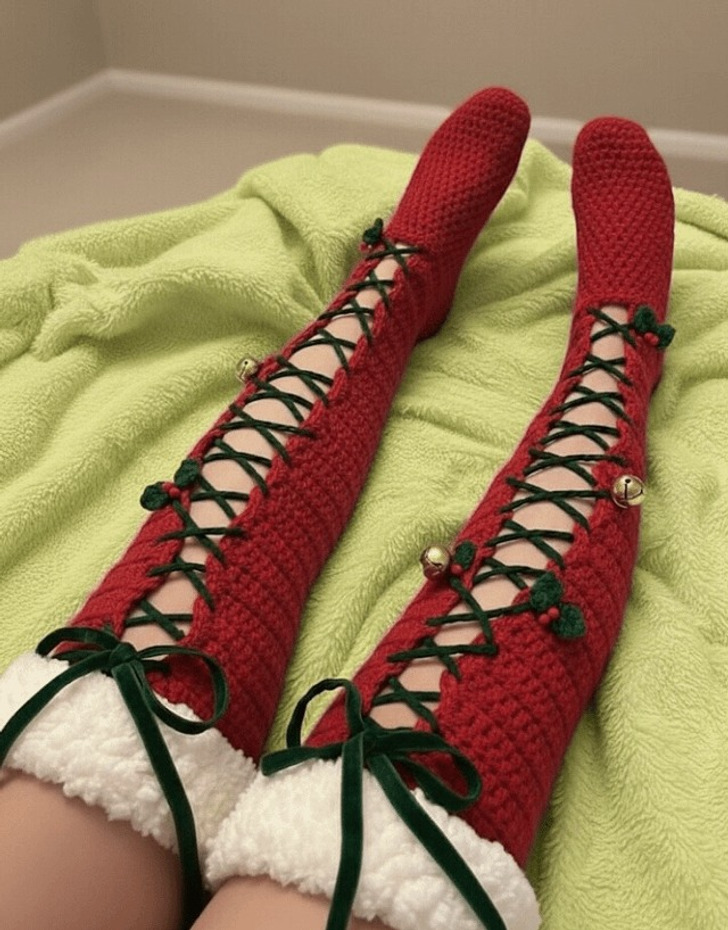 «Последние полтора месяца я пролежал с переломом колена. Стараюсь извлечь из этого максимум пользы, вяжу крючком несколько рождественских вещей. Начал с этих носков!»