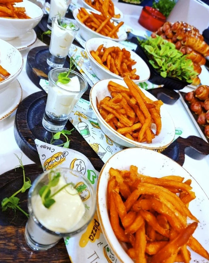 - Здорово придумано — подать сметану для длинненьких картошечек фри в такой стопочке, вспомнилась сразу сказка «Лиса и Журавль», только в положительном ключе.