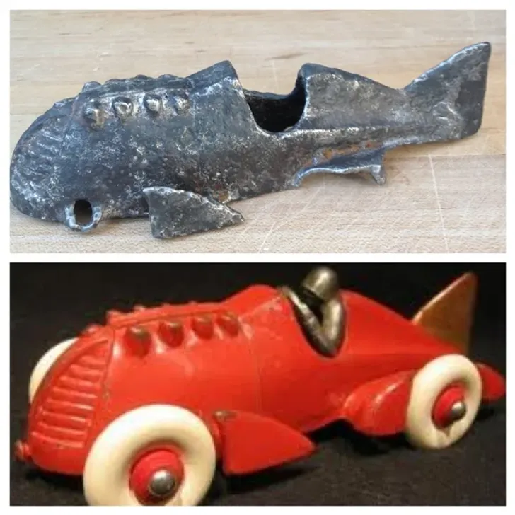 «Очистил это металлическое сокровище, которое нашел во дворе, когда копал. Оказалось, что это был чугунный игрушечный гоночный автомобиль 1930-х годов»