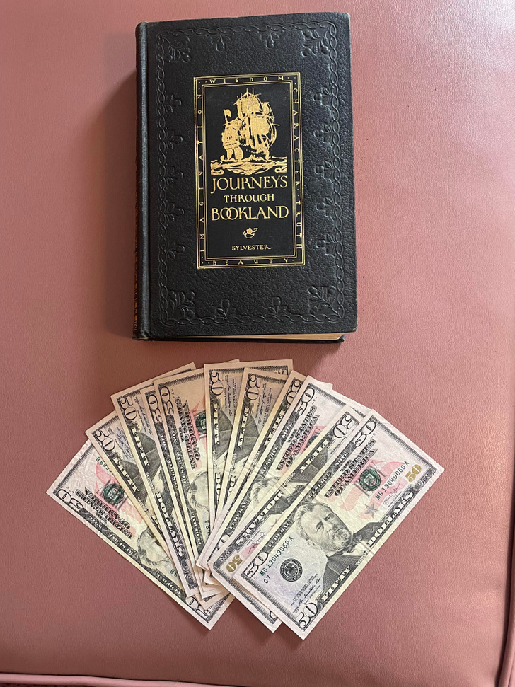 «Никогда бы не подумал, что мне так повезет! Купил эту книгу на распродаже несколько месяцев назад, а сейчас начал листать страницы и нашел там все эти купюры»