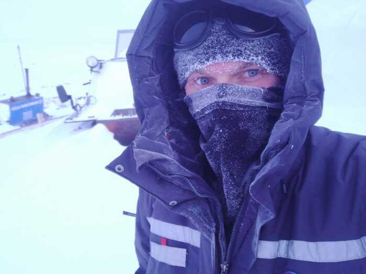 «Сейчас я работаю в офисе, но было и такое. Антарктида, Станция „Мирный“. Всем полярникам привет!»