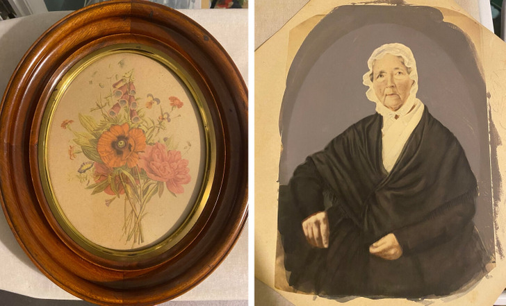 «Мы купили эту картину в комиссионке, а внутри был спрятан портрет. На нем какая-то неразборчивая надпись и дважды встречается число 46»