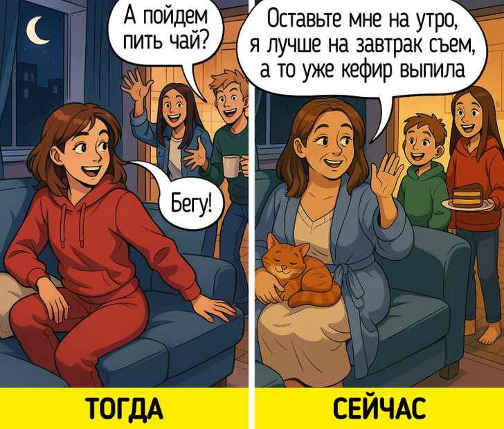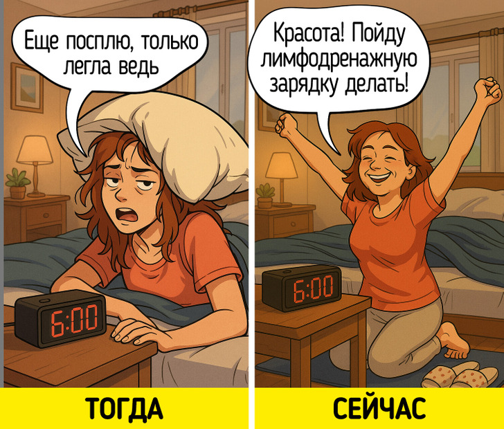 После 40 жизнь не замедляется, просто наши коленки и метаболизм начинают бастовать. Добро пожаловать в клуб «40 с хвостиком»! Эти трансформации неизбежны, но они не должны быть поводом для грусти. Ведь это не единственное, что нас ждет после сорока. Открывается новая глава в отношениях с самим собой. Мы решили представить, как это происходит с помощью серии честных и забавных комиксов. Приготовьтесь к смеху и самоиронии.