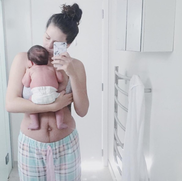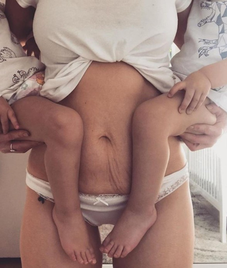 «Мой милый 6-недельный послеродовой животик. А скольким мамочкам тоже приходится выполнять несколько задач одновременно?»