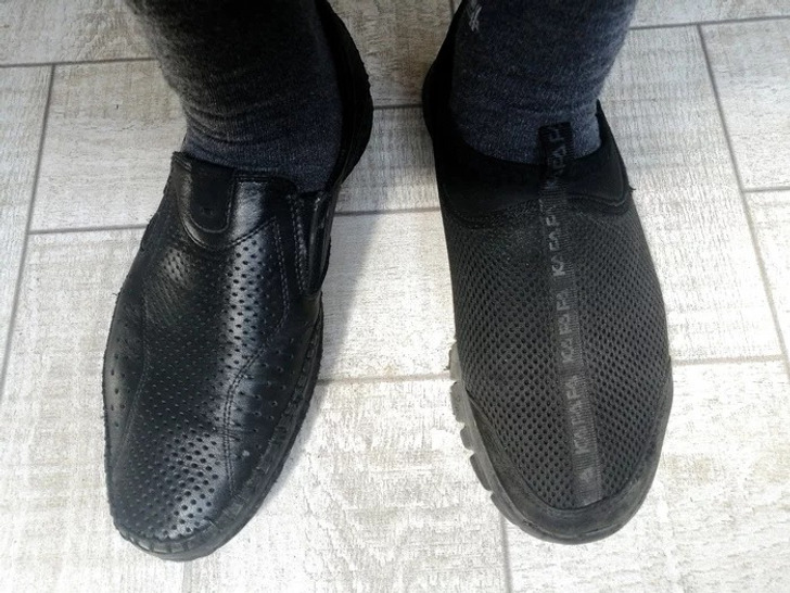 «Понедельник — день тяжелый. Приехал на работу, стал переобуваться, а тут... Как не заметил? Один тряпочный, другой кожаный»