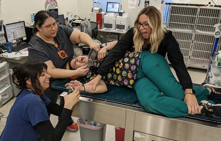 «Вот как мы дурачимся в день ветработника. Это я типа не хочу стричь ногти»