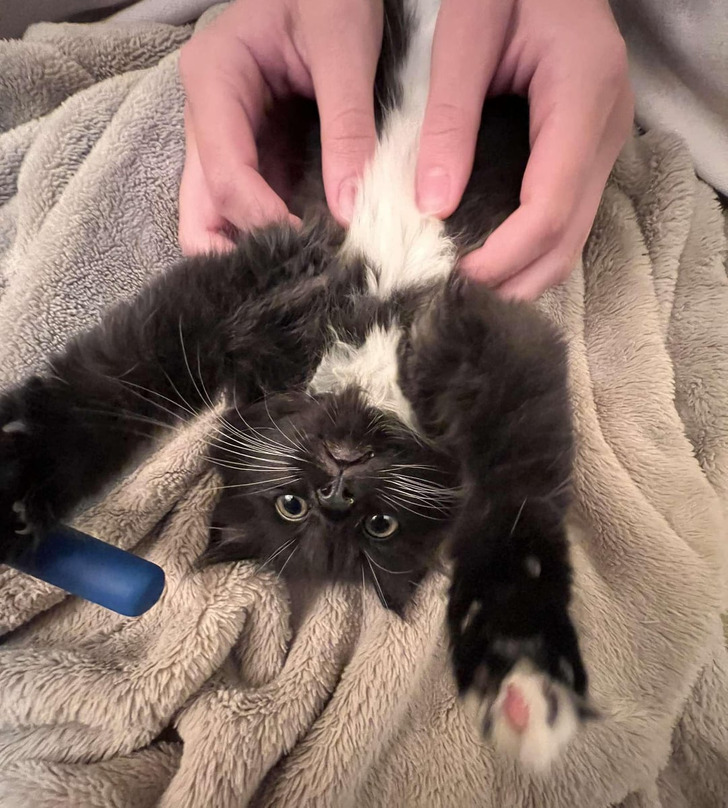 «Нашла вот эту маленькую штучку под двигателем машины своего друга. Я искупала ее, и ей, кажется, даже понравилось. Сейчас она спит со мной каждую ночь и просто обожает играть!»