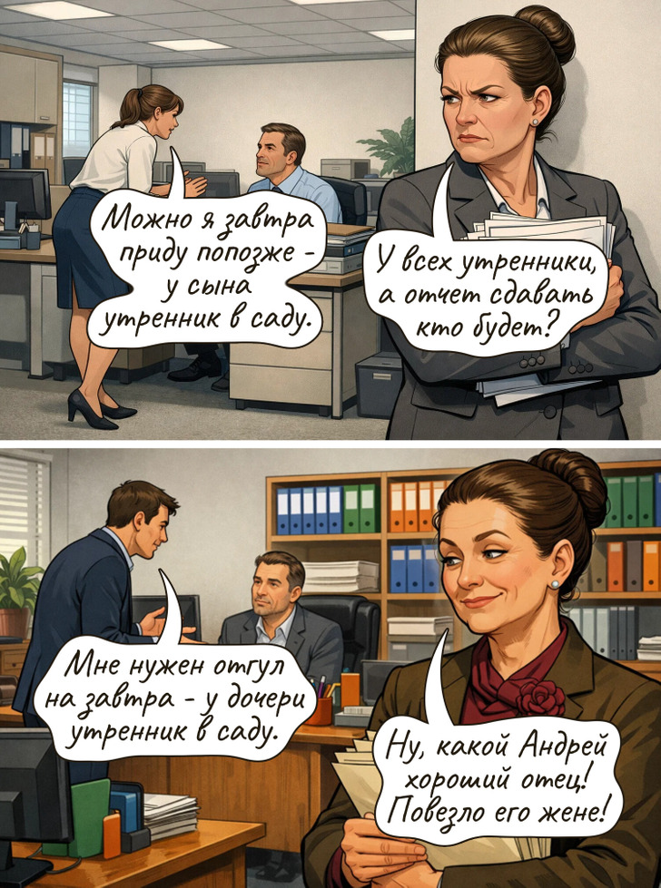 Там, где маму осудят за малейший промах, к отцу подойдут совсем с другой меркой