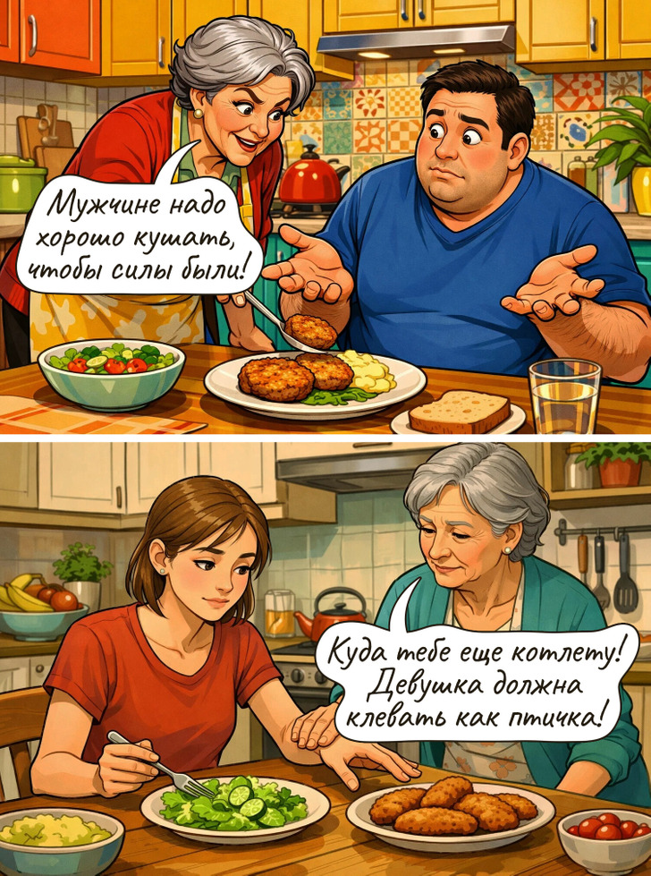 Потребности в еде у каждого индивидуальные, но отчего-то считается, что именно мужчина должен полноценно питаться, а женщинам следует ограничивать себя ради фигуры