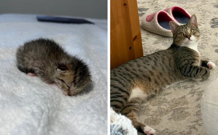 «Моя девочка в возрасте 3 недель, когда я ее спасла, и спустя 7 месяцев»