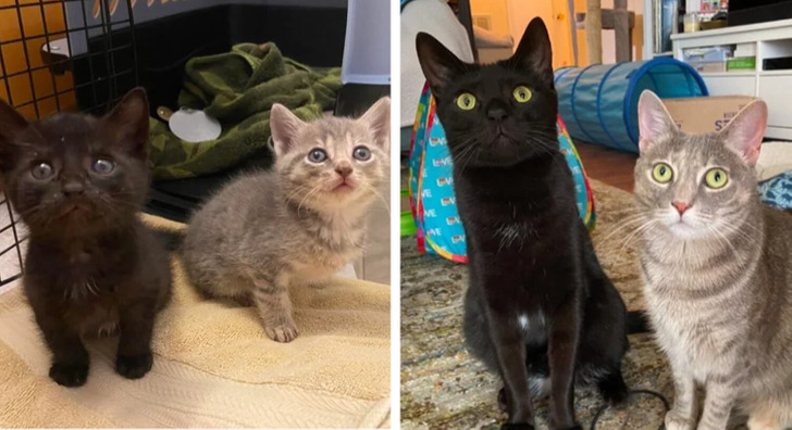 «Два года назад мы нашли пару котят, прячущихся под машиной на раскаленной парковке. Лили (полосатая) — самая милая и ласковая кошечка из всех, кого я знала, а Зимми (черненькая) — наша оторва»