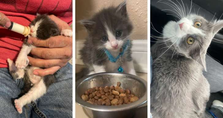«Этого малыша нашли возле автомастерской в морозную погоду. Он так жалобно мяукал... Теперь его зовут Турбо и он самый милый и счастливый мальчик»