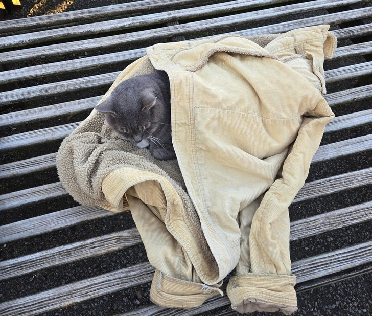 «Увидел рядом с местным магазином. Кто-то завернул кота в свою куртку и оставил ее»