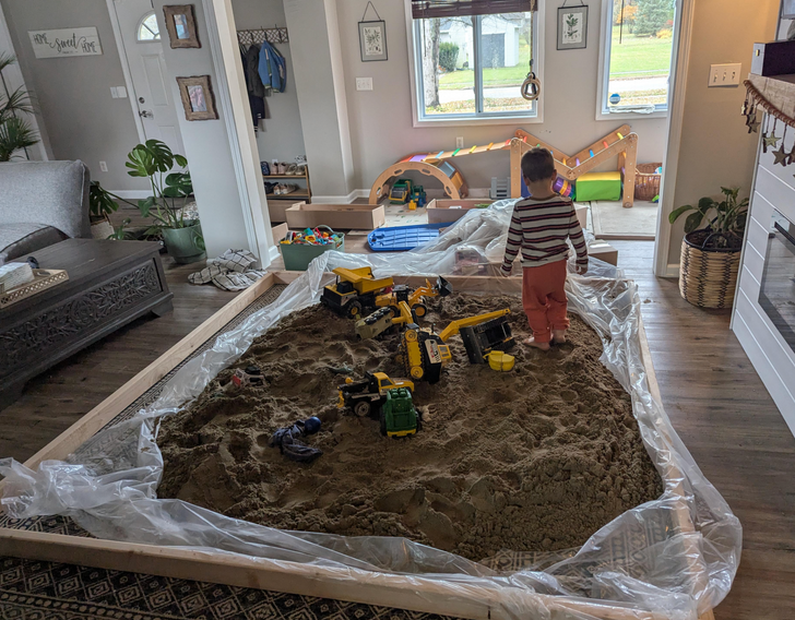 «Обещал сыну, что он поиграет в песке, но погода никак не налаживалась. Пришлось сдержать обещание, но другим способом...А когда ребенок улегся спать, мы с женой там устроили романтик»