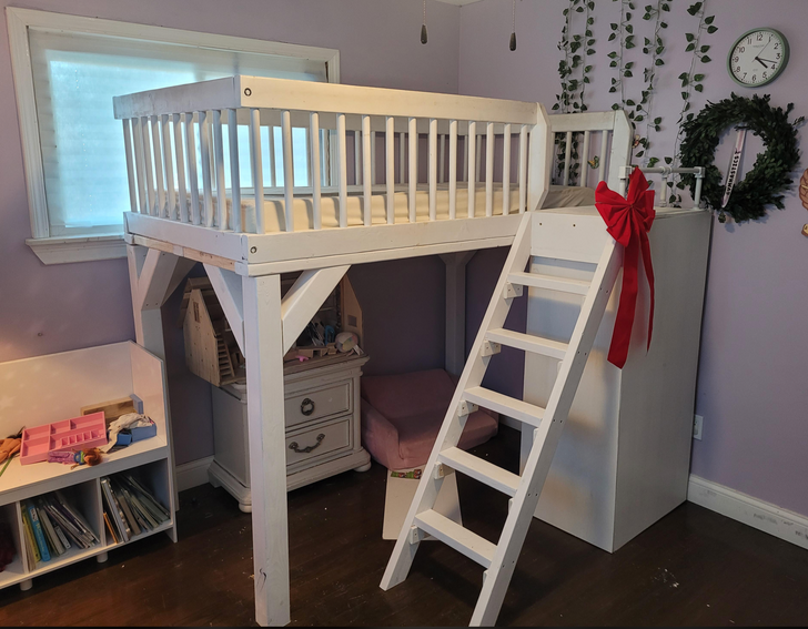 Очень практично, снизу стол, тумбы,а сверху кровать