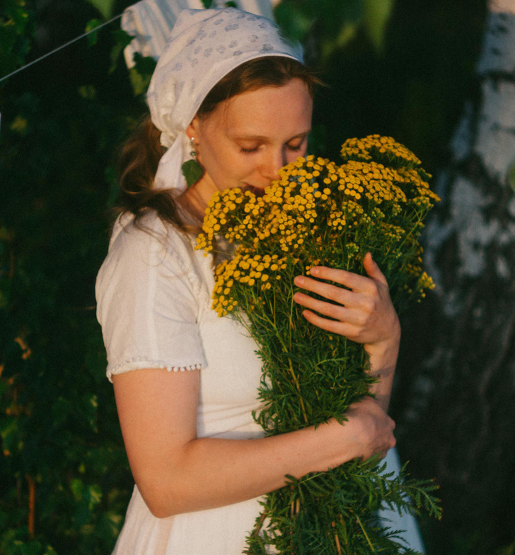Так радостно обниматься со строгом пижмы может только травница. Запах, прямо скажем, спицфисский...