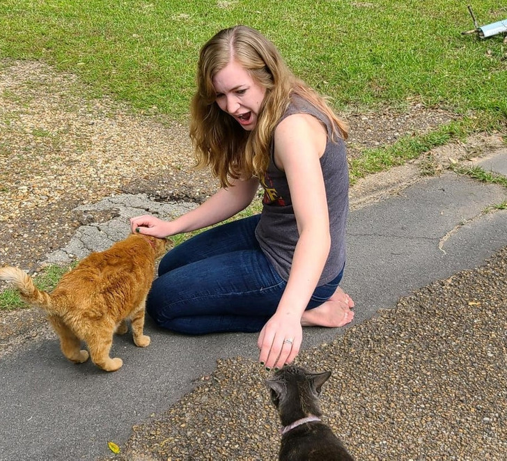 «Муж поймал момент, когда я увидела 2-го кота. Это наши новые соседские друзья»