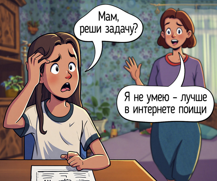 10. Уроки мы решали совместными силами всей семьи, а сейчас есть всезнающий ИИ или, на худой конец, просто интернет
