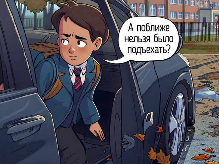 11. В нашем детстве на машинах если кого и развозили, то избранных. В основном народ ходил пешком — и в слякоть, и в мороз