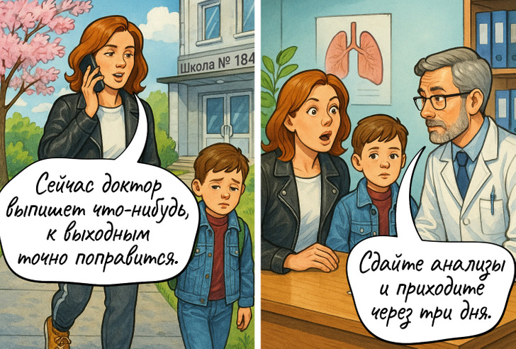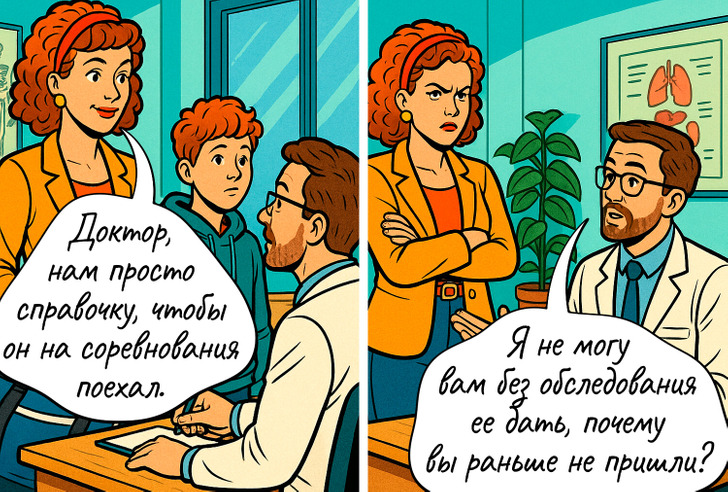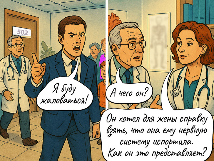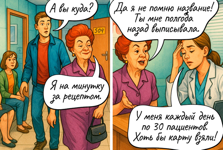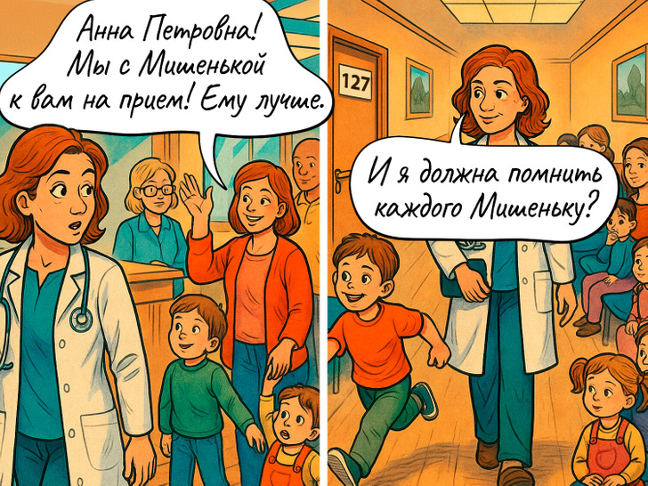 Большинство из нас не любит поликлиники и больницы. Ведь иногда визит к врачу может превратиться в маленький квест. Найти последнего в очереди, заказать талончик за месяц вперед, выпытать у ребенка правду, что у него болит. А ведь врачам тоже как-то приходится справляться с разными проблемами. Мы собрали самые распространенные ситуации в комиксы и внесли в них нотку юмора.