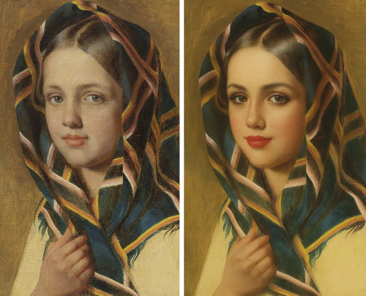Картины прошлых веков всегда привлекали внимание своей утонченной красотой. Художники умели подчеркивать достоинства своих моделей, но современные бьюти-техники способны показать их в совсем новом свете. Мы взяли эти портреты красавиц из разных эпох и при помощи нейросетей сделали им современный макияж. Получилось удивительное сочетание классики и актуальных трендов. Давайте смотреть!