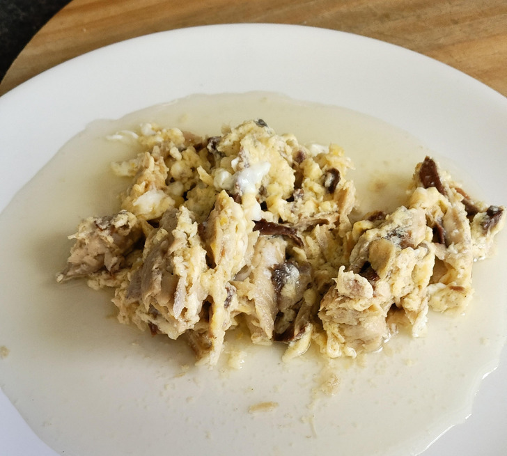 «Я начинающий кулинар. И решила попробовать популярный в соцсетях рецепт. Мне кажется, будто я совершила какое-то преступление. Это яичница с консервированной рыбой»