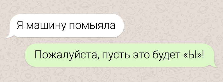 - А я из-за опечатки второй раз замуж вышла. Был знакомый, не помню уже, что обсуждали. И вот в конце пишу ему, что поздно, мол, «пожелай мне спокойной ночи» — а я спать. Но когда увидела, что отправилось аж в ушах жарко стало — стыдно так. Там было вместо «ж» написала «д» — буквы рядом. И понеслось: как же упустить момент, чтобы не подколоть. Ну и вот дошутились. © Олеся / ADME