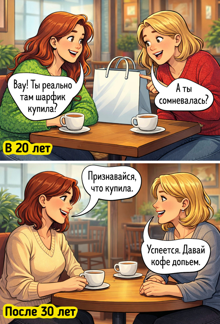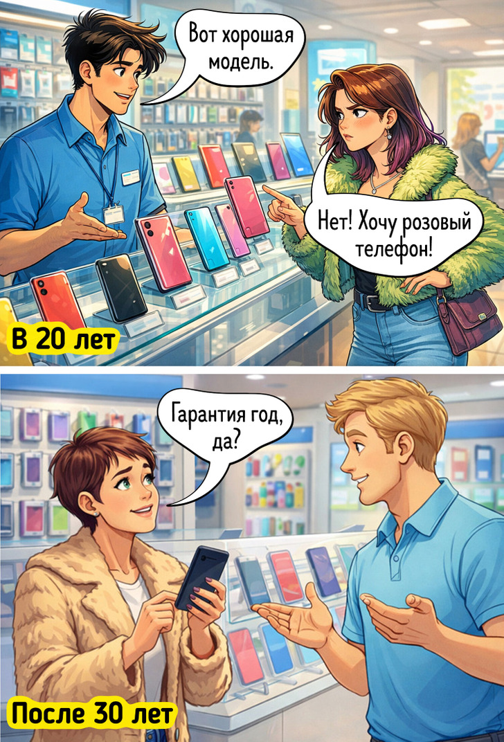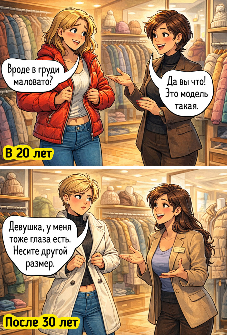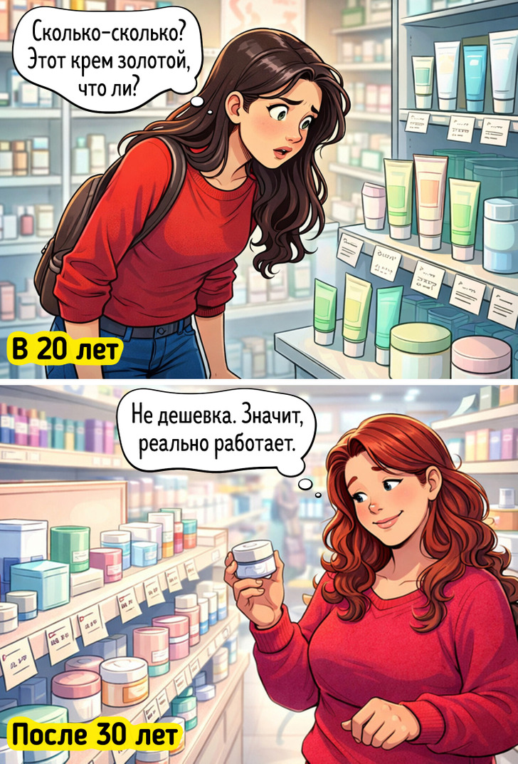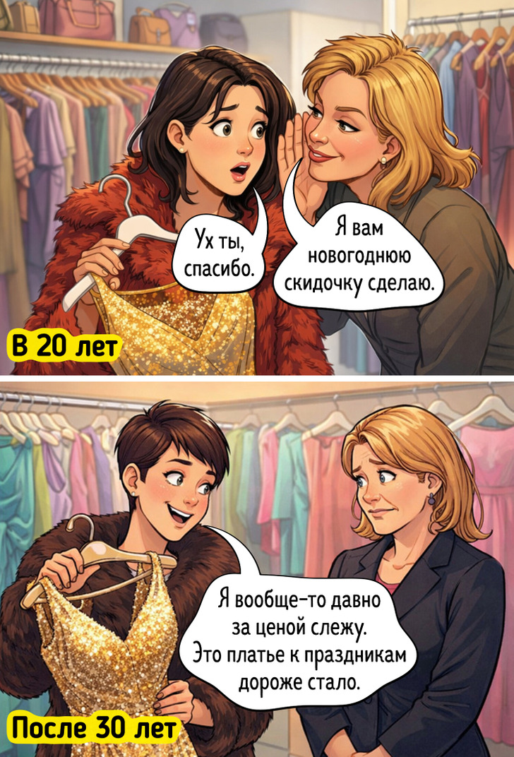 В юности нас порой так и тянет купить что-то яркое и блестящее. Хорошо, что в этом возрасте многие из нас слегка ограничены в финансах, иначе бы шкафы дома просто ломились бы от одежды и косметики. Зато с возрастом часто приходит умение планировать бюджет и не вестись на заманчивые предложения о скидках и распродажах. Наши комиксы как раз об этом. И вполне возможно, что вы узнаете в них себя или своих подружек.