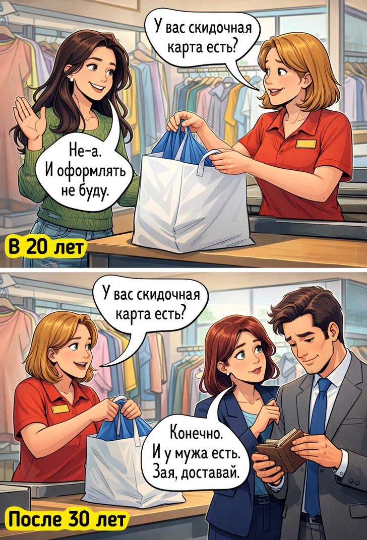 15+ легких комиксов о том, чем отличается шопинг в юности от покупок в зрелые годы