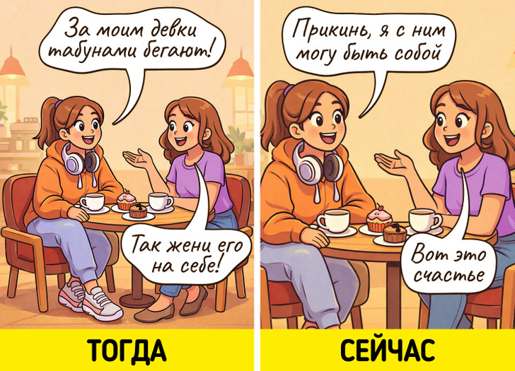 Меняется требования к партнеру. То, что казалось привлекательным раньше, отходит на второй план и вызывает больше вопросов
