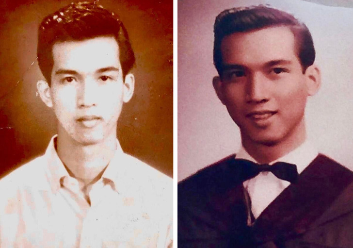 «Фотографии моего папы в 1960 году — днём работает клерком, по вечерам учится на юриста, и вот он в 1964-ом — уже выпускник с дипломом юриста»