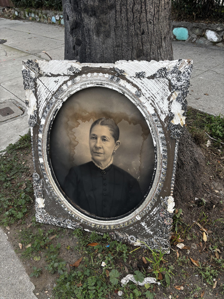 «Это зеркало у меня уже почти десять лет — когда-то нашёл его в коридоре старого дома. Всё это время оно стояло на улице и со временем совсем развалилось. И вот тогда внутри обнаружился портрет этой пожилой женщины.