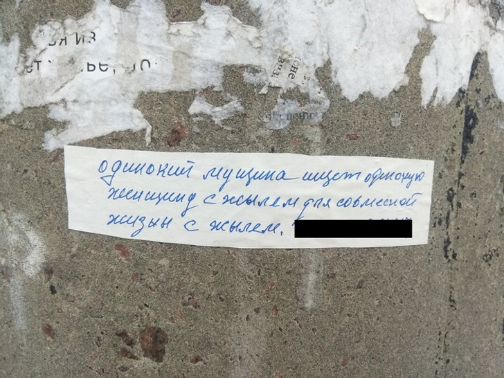 «Одинокий мужчина ищет одинокую женщину с жильем для совместной жизни с жильем»