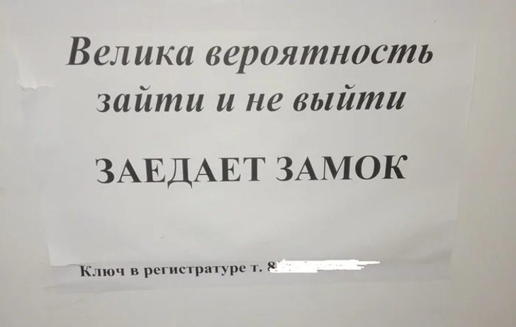 «Ездил сегодня в командировку в соседний район, надпись на двери внутри туалета»