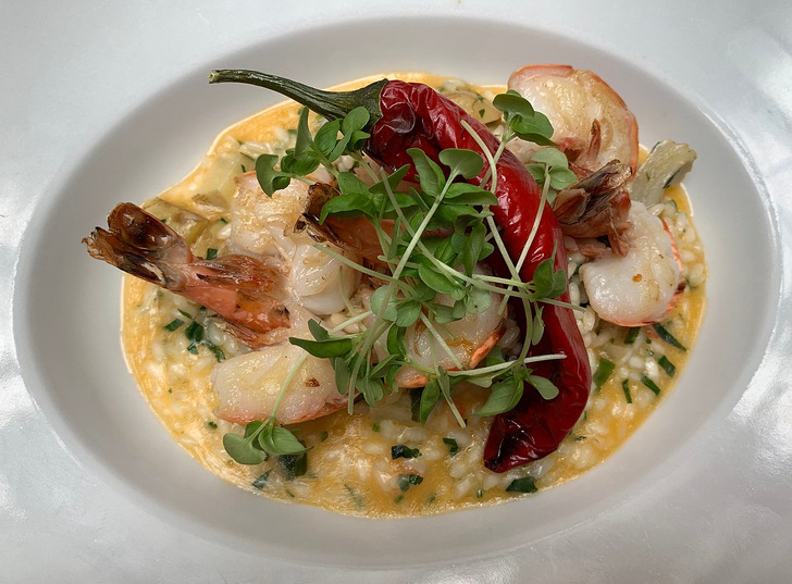 "Ризотто де гамбас". Люблю креветки. И пробовала Ризотто (в разных вариациях). Но конкретно это блюдо, выглядит не слишком аппетитно. А, может, всё дело в оформлении.