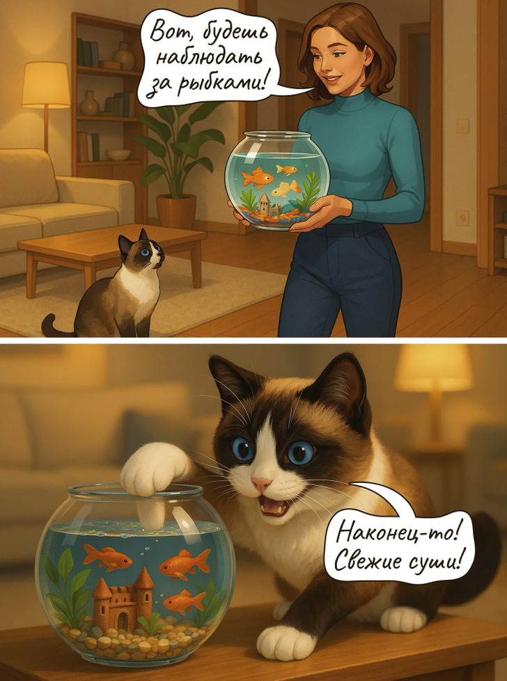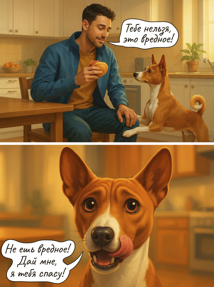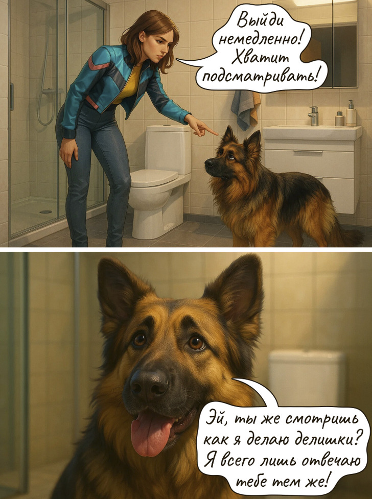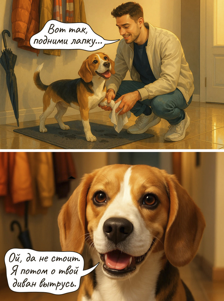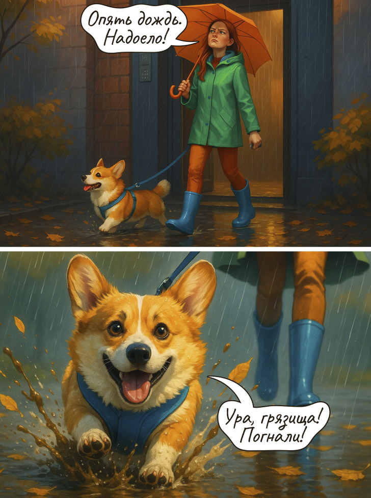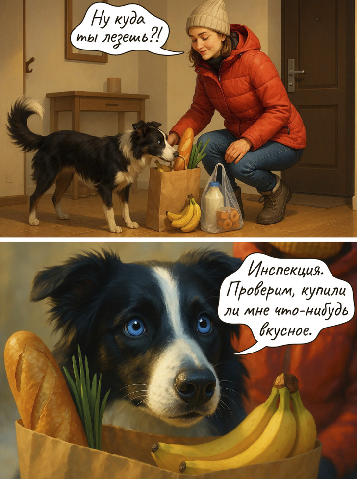 Все мы знаем, что наши питомцы — настоящие члены семьи. Но задумывались ли вы, насколько по-разному выглядит один и тот же день в глазах хозяина и в глазах его четвероногого друга? Простая прогулка в парке, визит к ветеринару или момент, когда вы достаете корм, — на самые обычные моменты в нашей общей реальности всегда может быть две точки зрения. Именно этот забавный контраст восприятия и лег в основу наших комиксов.