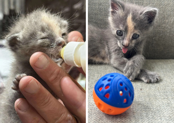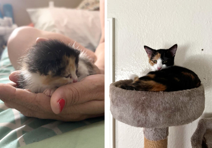 «Жена нашла недельного котенка в мусорном баке. Мы сразу влюбились в этот комок! Прошло чуть больше месяца и наша девочка превратилась в маленький ужас»