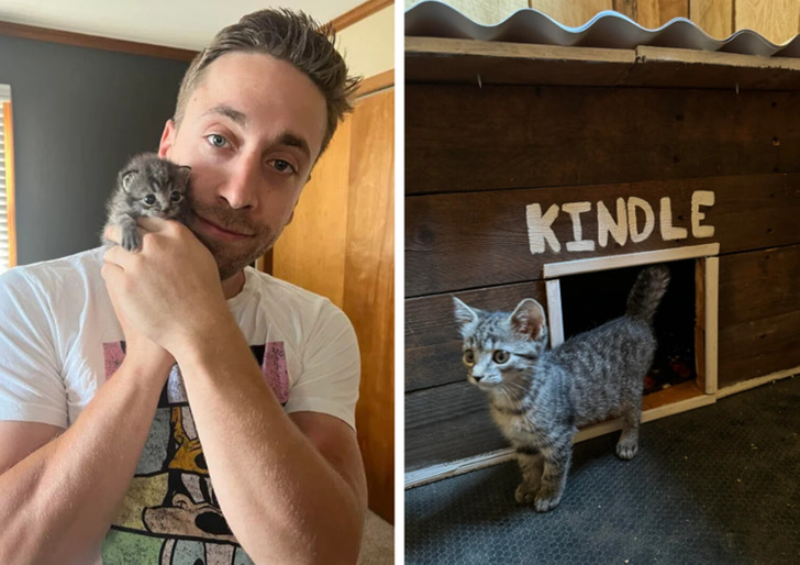 «Нашли эту крошку в куче дров. Теперь она живет в нашем амбаре и ее зовут Киндл»