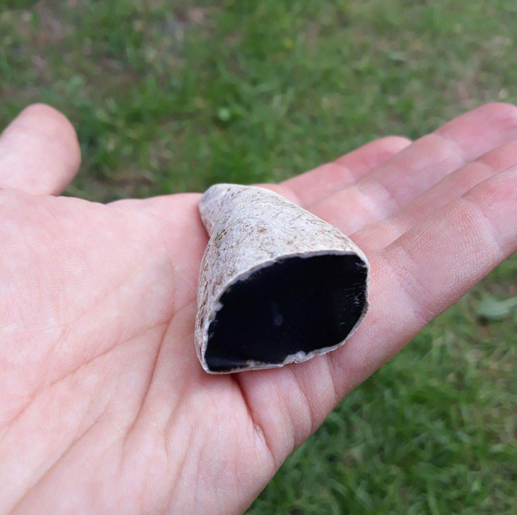 «Вот что нашел сегодня. Сразу подумал, что просто какой-то камень. Но вы гляньте только, какой он черный внутри!»
