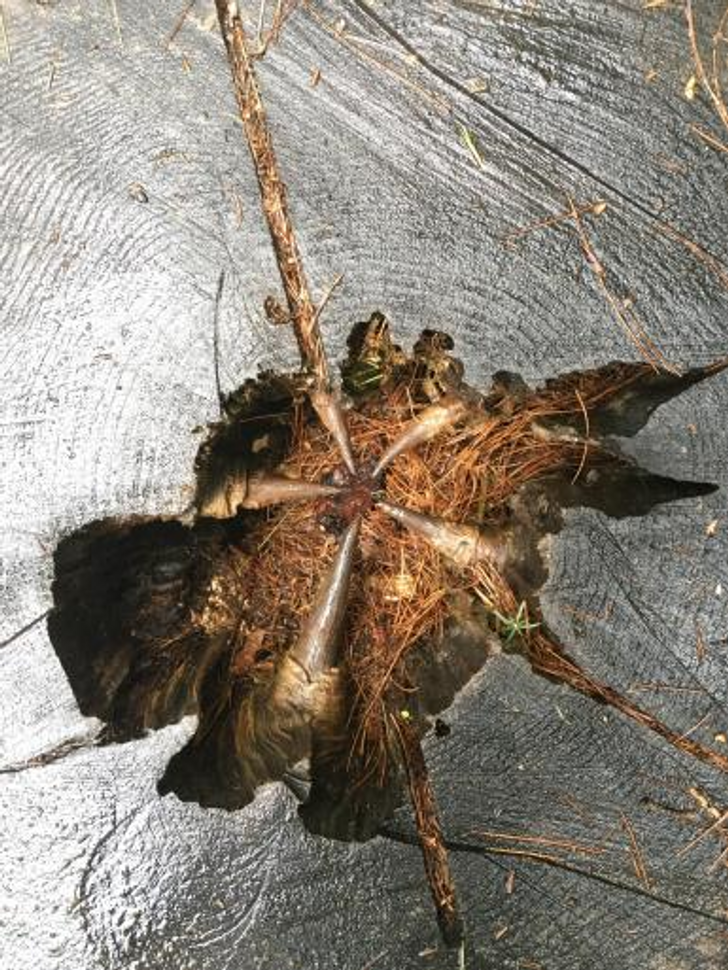 - Это просто старый пень. А то, что выглядит как металлические когти — всего лишь отростки ветвей. Их соединение со стволом дерева так и выглядит. © hassett / Reddit