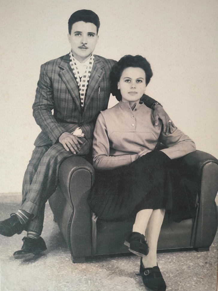 «Мои бабушка и дедушка поженились тайно, так как их семьи были против. Чтобы сделать это фото, дедуля ушел с работы в автомастерской пораньше. На фотке видно, что у него руки все еще испачканы»