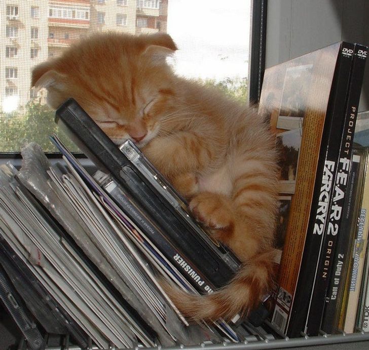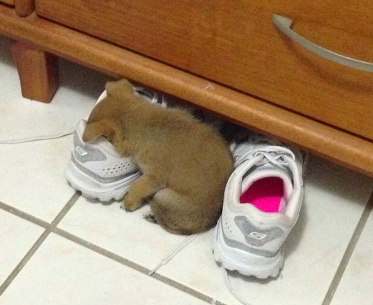 Иногда мы находим своих животных спящими в самых неожиданных местах: например, уходя из дома, можем наткнуться на питомца, мирно сопящего в нашей обуви. Такие моменты невероятно умиляют. И, само собой, мы стараемся быстро и тихо сфотографировать своих четвероногих друзей, пока они не проснулись.