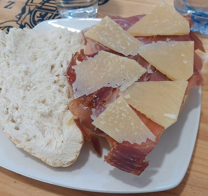 • Был в Испании, и меня буквально поймала владелица одного заведения. Шел мимо, а она, ничего не спрашивая, усадила за столик с водой, показала на нее, уточнила, голоден ли я, и ушла на кухню. Вернулась с бутербродом: хамон и сыр. Пока я его хрумкал, меня никто не трогал. Потом подошла снова, рассказала, что они с мужем, которого зовут Сантьяго, тоже были в Сантьяго-де-Компостела. Правда, не пешком, а доехали на машине. И вдруг — хоп — вручает мне огромную, граммов на 500, пачку хамона. © KlevetA52 / Pikabu