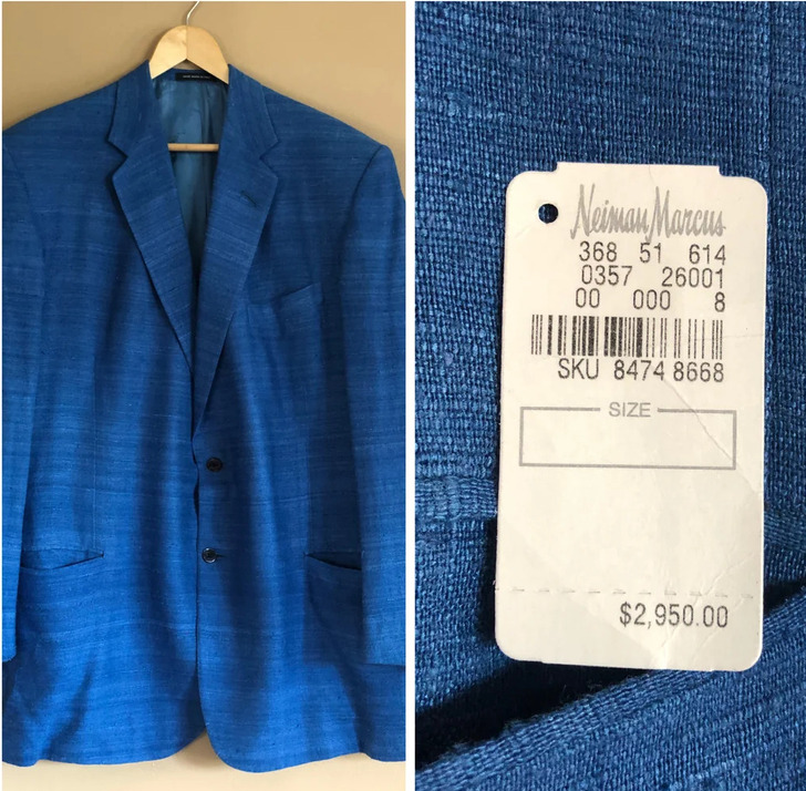 Нашел классный пиджак из сырого шелка в секонд-хенде. Представьте мое удивление, когда в кармане оказался оригинальный ценник на 2950 долларов! Теперь чувствую себя настоящим франтом