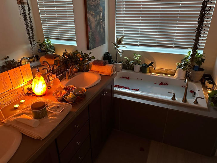 Меня больше смущают цветы в горшках на краю ванны. Они там на постоянной основе стоят, и не падают, когда кто-то в ванне сидит и в активном процессе мытья?