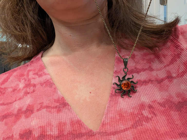 «После долгого пребывания на солнце я получила ожог и белое пятно в форме солнца от моего кулона»