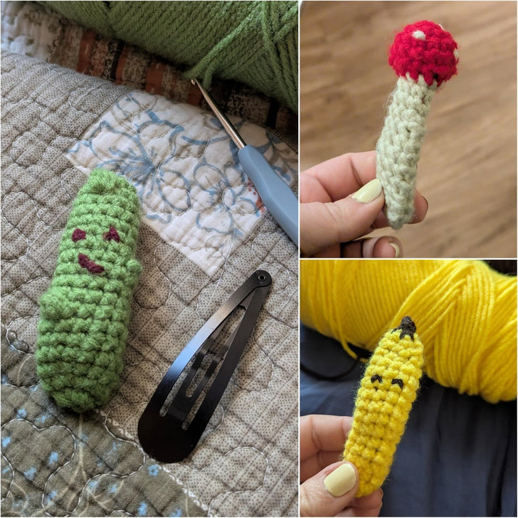 Как-то с трудом я представляю себе эти вязаные колобашки в качестве заколок)