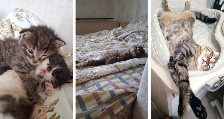 «Год назад нашла в подвале котят вместе с мамой-кошкой. Они были там дней 5-7 без еды, воды. Мама-кошка сбежала в закат, а я стала для них второй мамой»