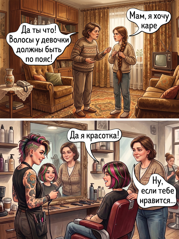 В нашем детстве коса у девочки была одним из главных достоинств. Ни красить волосы, ни тем более стричь их нам не разрешали. Зато современные девчонки отрываются вовсю (нет, мы не завидуем!)