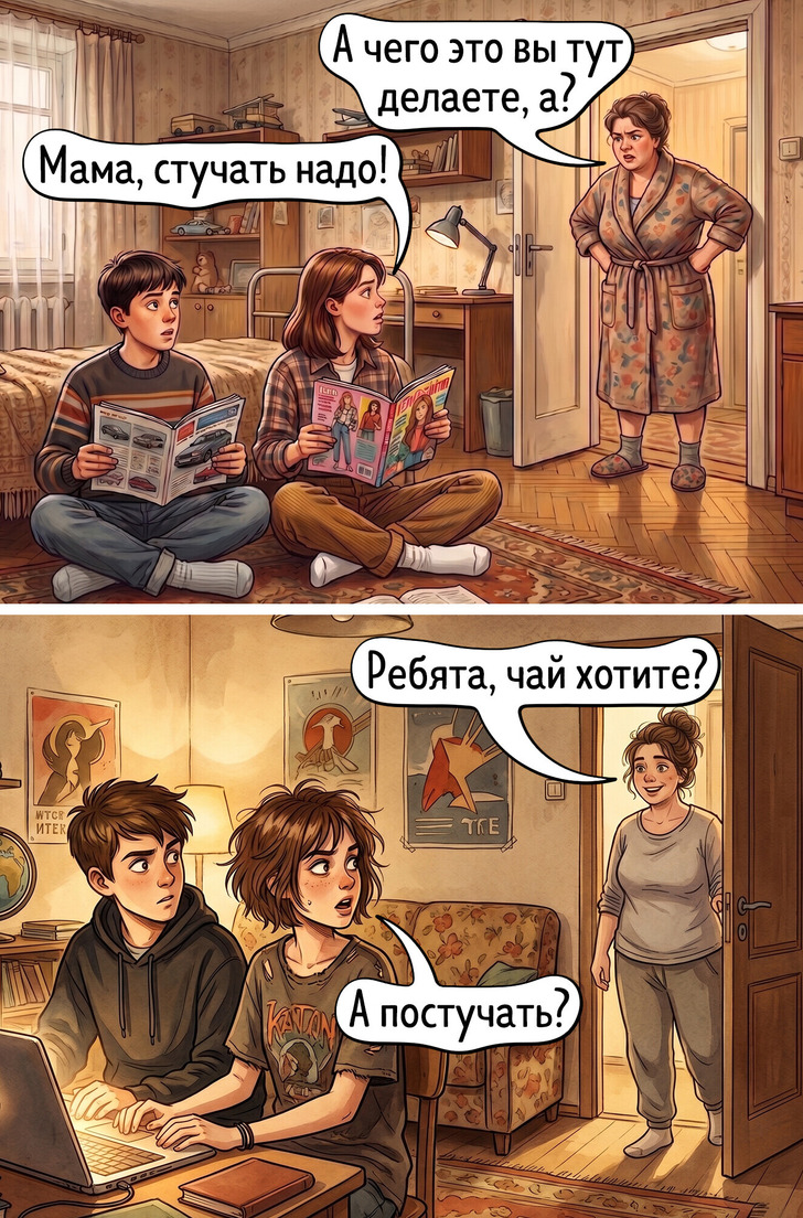 Дверь в свою комнату нам запрещали закрывать. А уж если в гости мальчик приходил, то пиши-пропало! А современные мамы и папы уважают личные границы своих чад